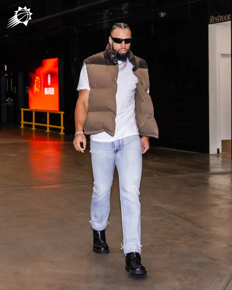 赛前,太阳社媒晒出球员步入今日比赛场馆的瞬间,狄龙-布鲁克斯等球员出镜。