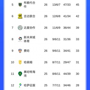 21 03月 2026 17 开云入口-沙特联积分榜:胜利领跑!吉达国民本轮输球,明晨胜利和新月出战 03月14日讯 北京时间今天凌晨沙特联第26轮多场比赛结束,其中吉达国民2-3不敌库迪西亚,吉达联合1-3利雅得体育。目... 意甲