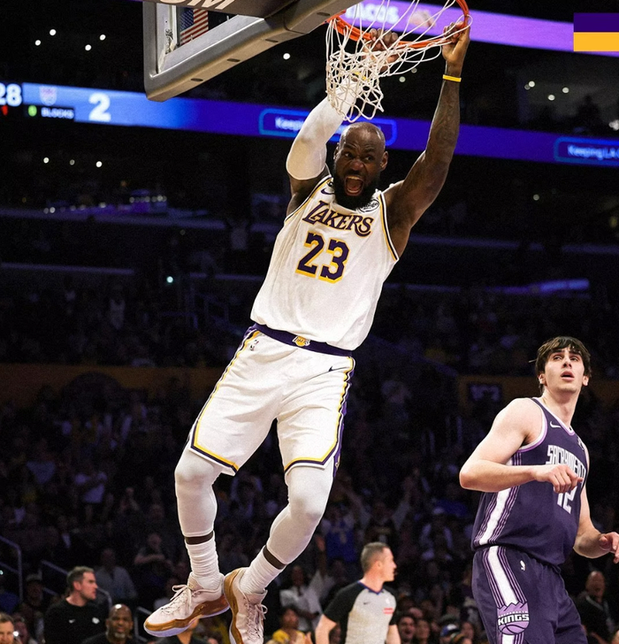 詹姆斯稳如磐石,24分5助攻,还顺手破了两个纪录。