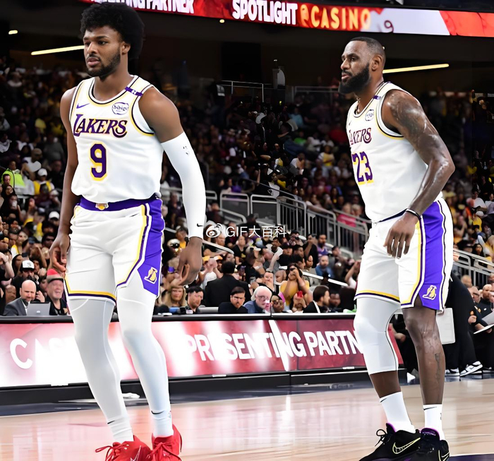 坐在板凳上,看着儿子布朗尼命中三分,他站起来,双手挥舞,笑得比谁都开心。